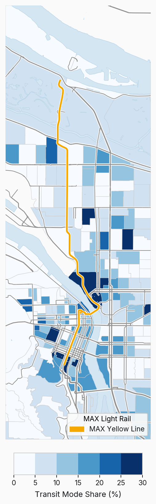 This design gets results: the yellow line has higher speeds, higher total ridership, and higher per-mile ridership than any of Portland's streetcar lines. And that's despite most of the line traveling through neighborhoods with far fewer transit riders than the streetcar: